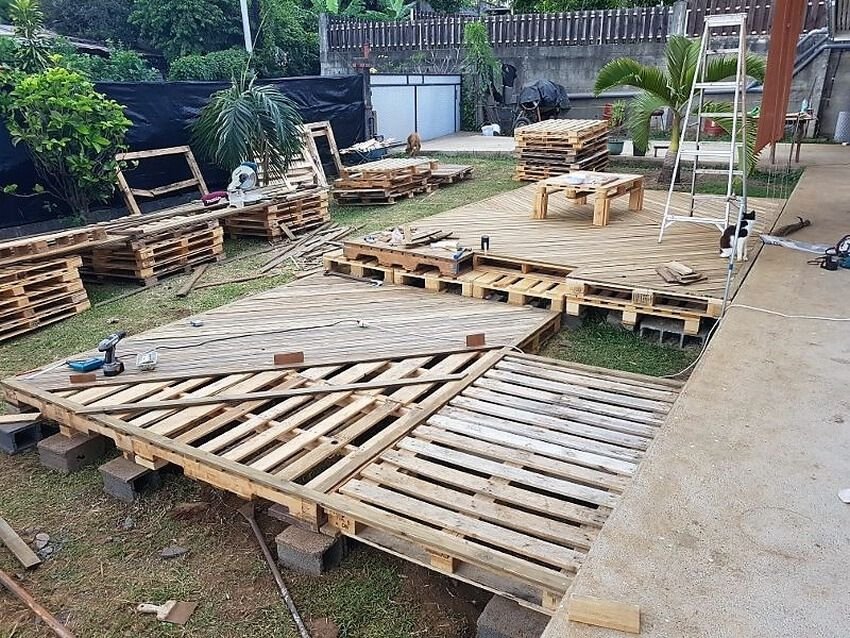 - Então, posicione pallets lado a lado