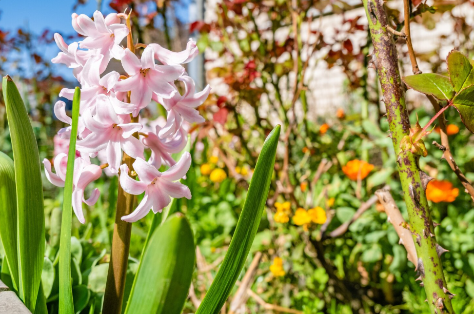 Muscari (jacintos-de-cacho): Pequenas flores azuis em formato de cacho adicionam textura e cor contrastante interessante. Seu perfume suave complementa sem competir.