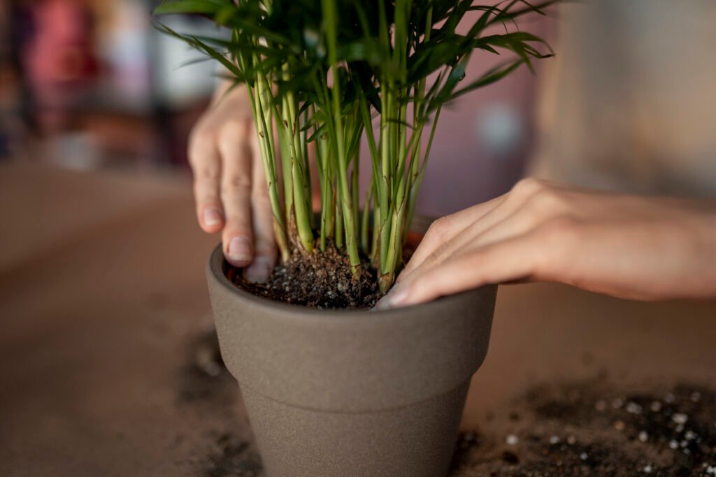 “Deixar espaço para crescer” todavia parece lógico, mas em contrapartida cria problemas. Terra sem raízes fica encharcada, causando podridão. Portanto, transplante progressivamente.